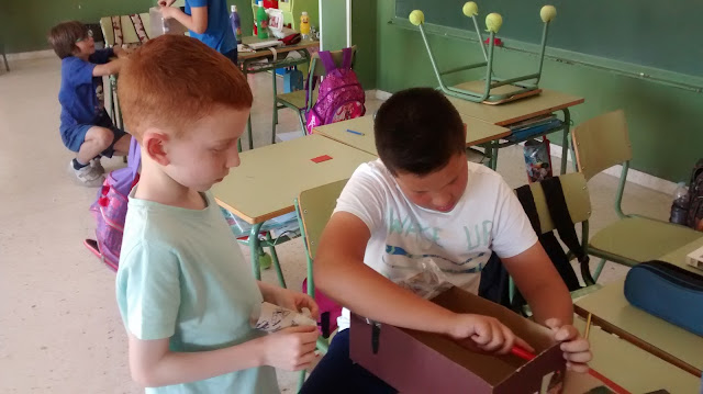La semana pasada, para continuar con nuestro proyecto "Plantas" hemos elaborado un laberinto para plantas en unas cajas de cartón, con la finalidad de comprobrar si los brotes crecerán e irán esquivando los obstáculos que hemos puesto y llegarán, por último, a un agujero en la parte superior; buscando el sol.